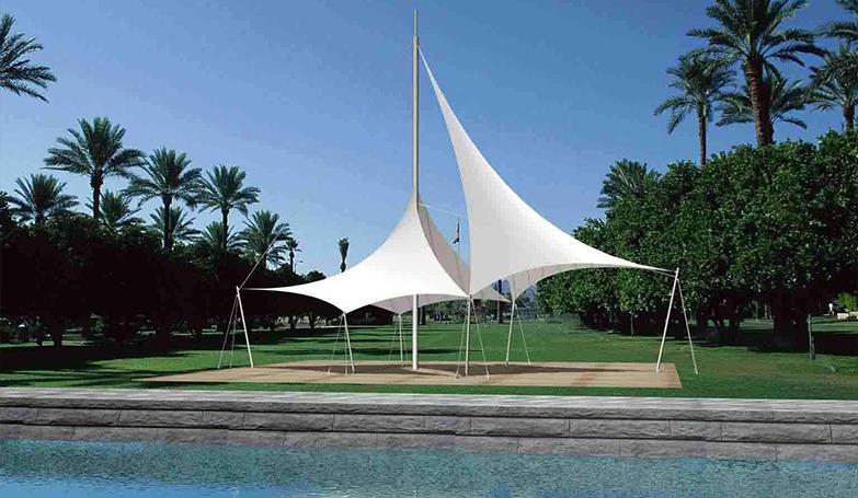 3、景觀張拉膜可移動性和暫時性:景觀張拉膜與其他構造對比的優點便是輕形構造對自然環境的影響具備可調合性。此外它也有兩個關鍵的特點,可移動性和協調能力。91香蕉视频污污工程能夠在不一樣的地址不斷折遷,膜材柔和的特性使其便捷運送,且便於快速構建,而閑置不用時占有空間小,這類特性使91香蕉视频污污工程十分適用暫時性可挪動建設。
